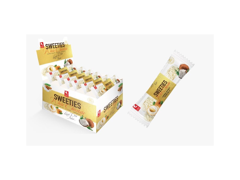 Zloženie: jemný krém (cukor, rastlinné oleje (palmový, bavlníkový, slnečnicový,), sušené odstredené MLIEKO, sušená SRVÁTKA, emulgátor: SÓJOVÝ lecitín, aróma), poleva s príchuťou bielej čokolády (25%)(cukor, palmový olej, sušené odstredené MLIEKO, sušená SRVÁTKA, emulgátor SÓJOVÝ lecitín, aróma, vanilín), kokos (10%), oblátka (8%), (PŠENIČNÁ múka, emulgátor SÓJOVÝ lecitín, VAJEČNÉ BIELKA, jedlá soľ, slnečnicový olej, cukor, kypriace látky uhličitany sodné, uhličitany amónne, uhličitany horečnaté), celé MANDLE (8%).